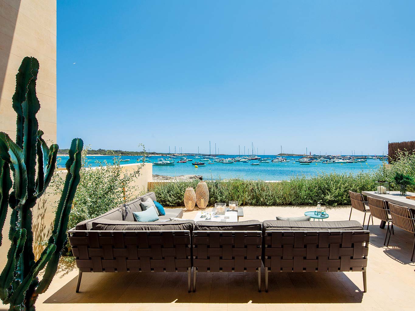 O arquiteto Rafael F.Rigó, e a designer de interiores Andrea Pussin do estúdio Organic, são os responsáveis por esta casa em Maiorca. Utilizaram toda a vista para o mar e o horizonte como elementos chave do design. O grande terraço é um dos principais atrativos da casa onde o mar é o ponto de partida, mas também a alvo.