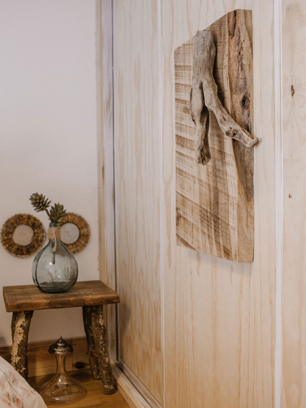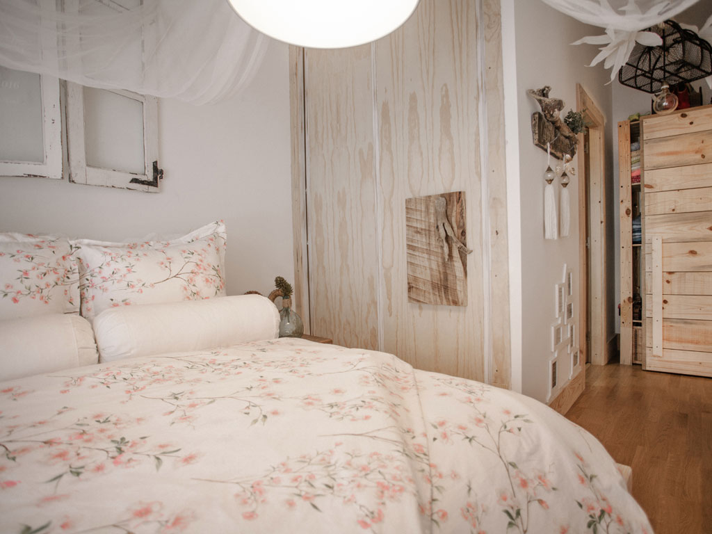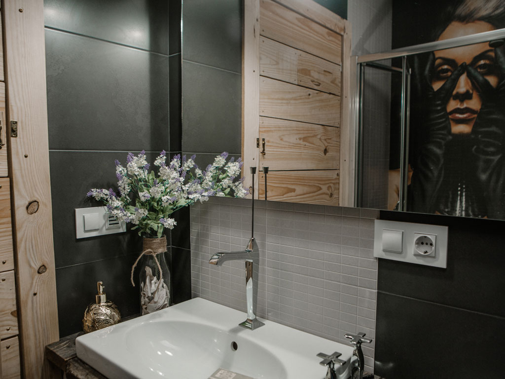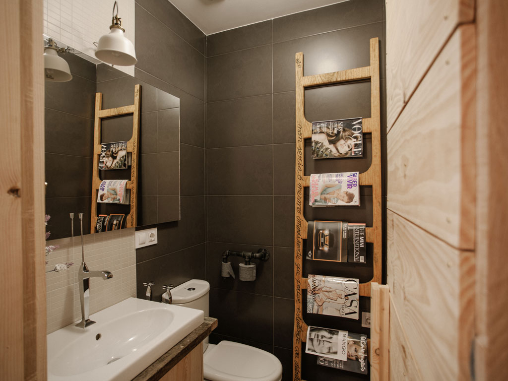 Maria, ávida leitora da revista espanhola Micasa, vive num apartamento em Cangas, uma vila de pescadores. O tema é o romance e natureza. Ela decorou este espaço não como os outros. Troncos recolhidos na praia objetos misturados com móveis de família, etc. É uma decoração bastante sábia. A casa de banho é o espelho disso, onde a ousadia foi convidada para o chuveiro.