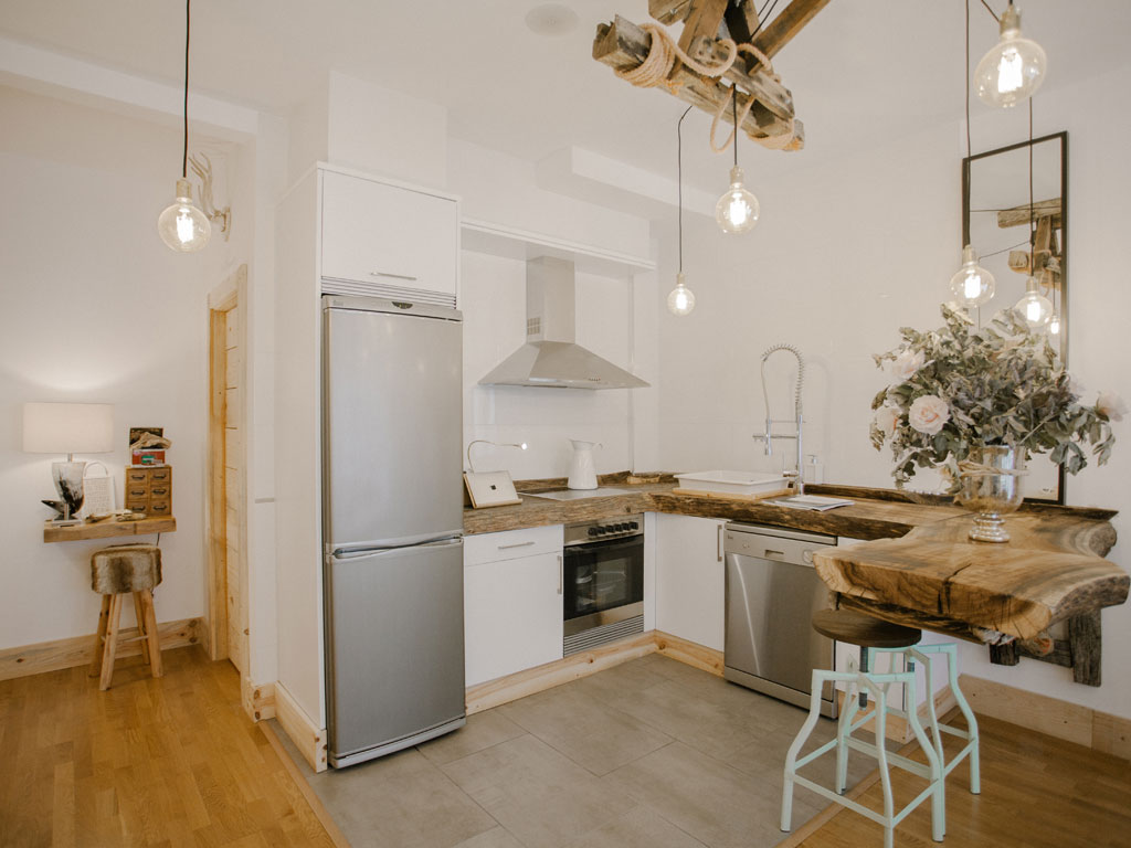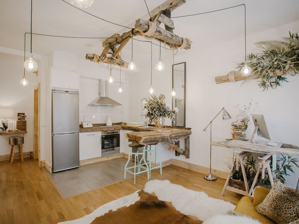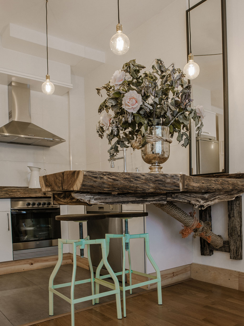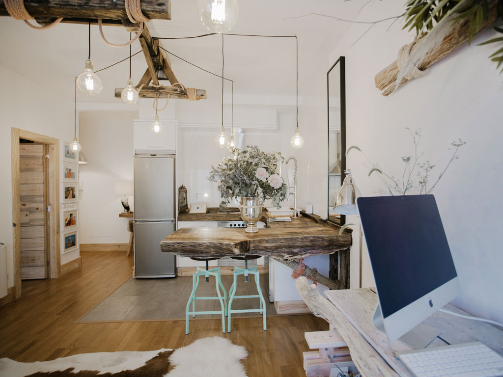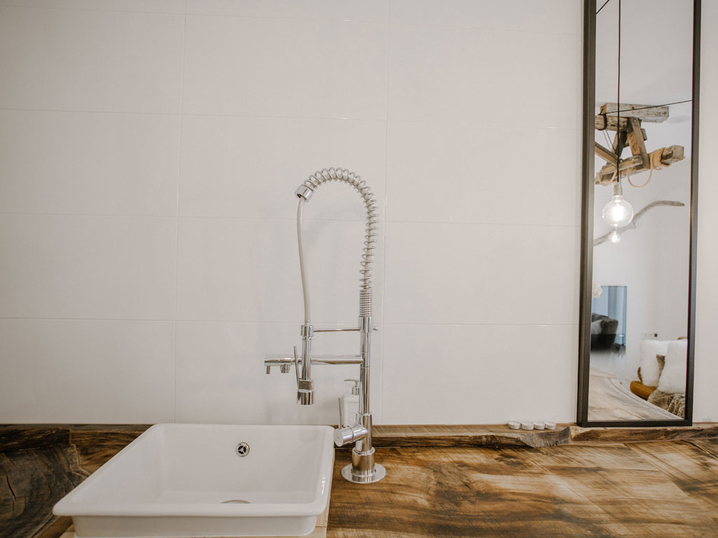 Maria, ávida leitora da revista espanhola Micasa, vive num apartamento em Cangas, uma vila de pescadores. O tema é o romance e natureza. Ela decorou este espaço não como os outros. Troncos recolhidos na praia objetos misturados com móveis de família, etc. É uma decoração bastante sábia. A casa de banho é o espelho disso, onde a ousadia foi convidada para o chuveiro.