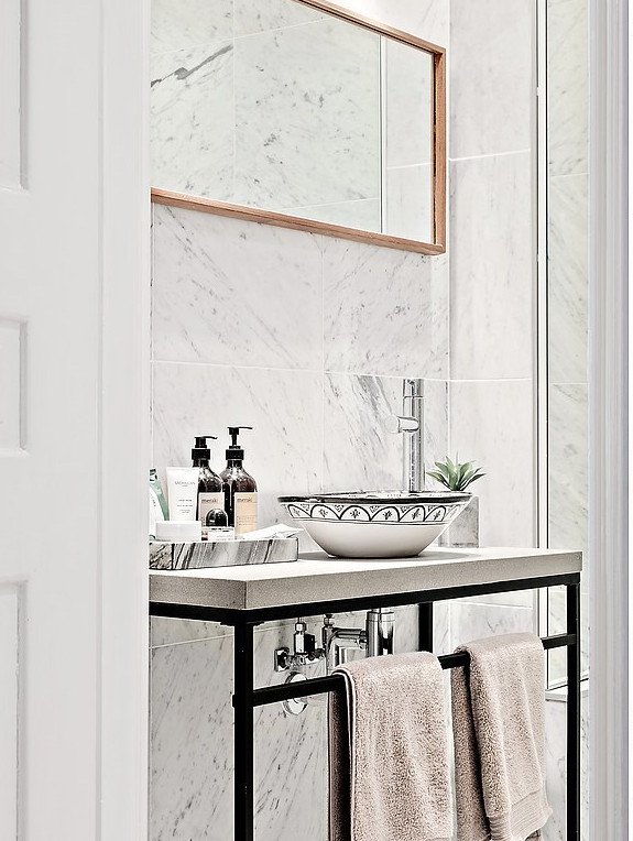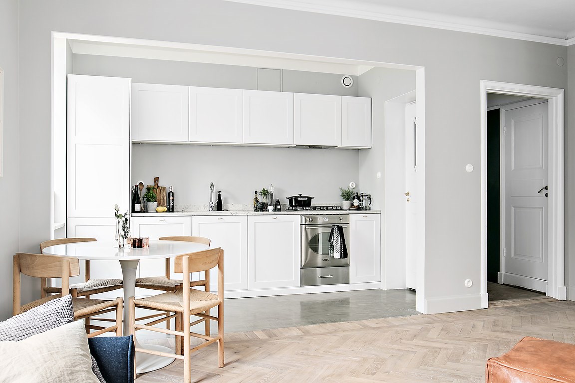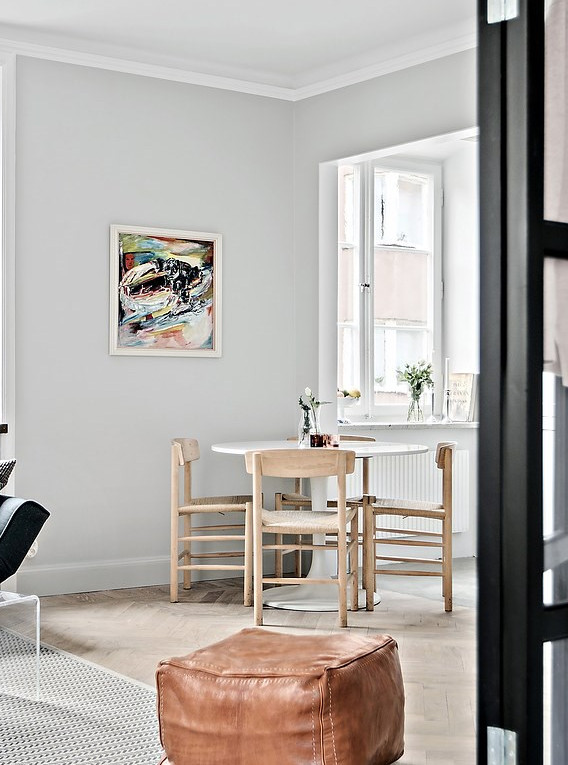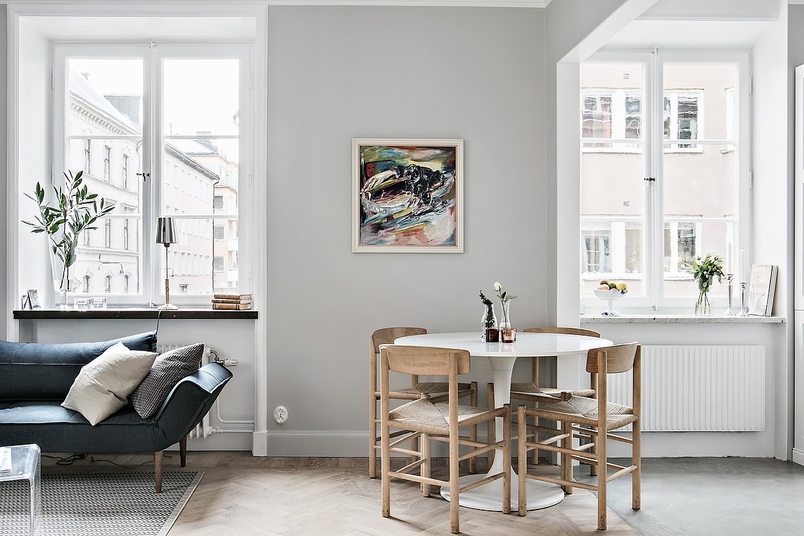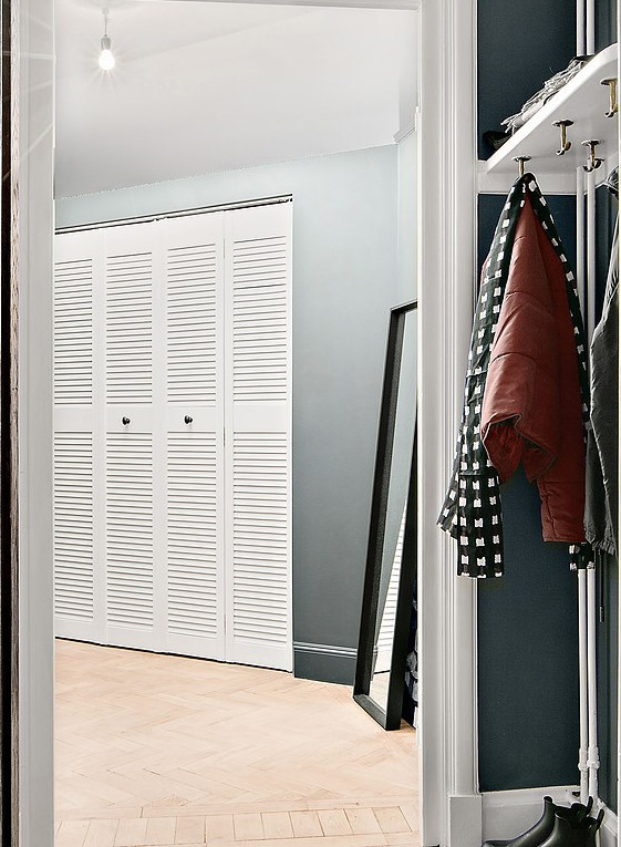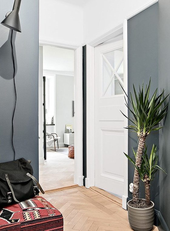 48m² de puro charme. Este apartamento tem vários recursos interessantes: um quarto atrás de uma parede de vidros, decoração de design quase minimalista na sala de estar e uma entrada como mechas escuras que nos leva para a luz.