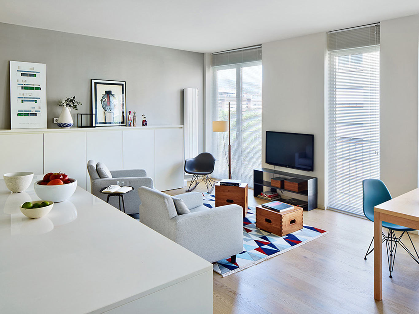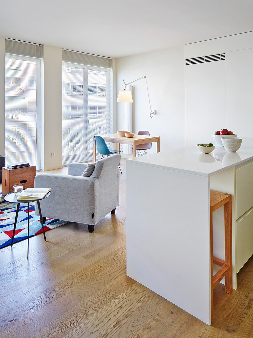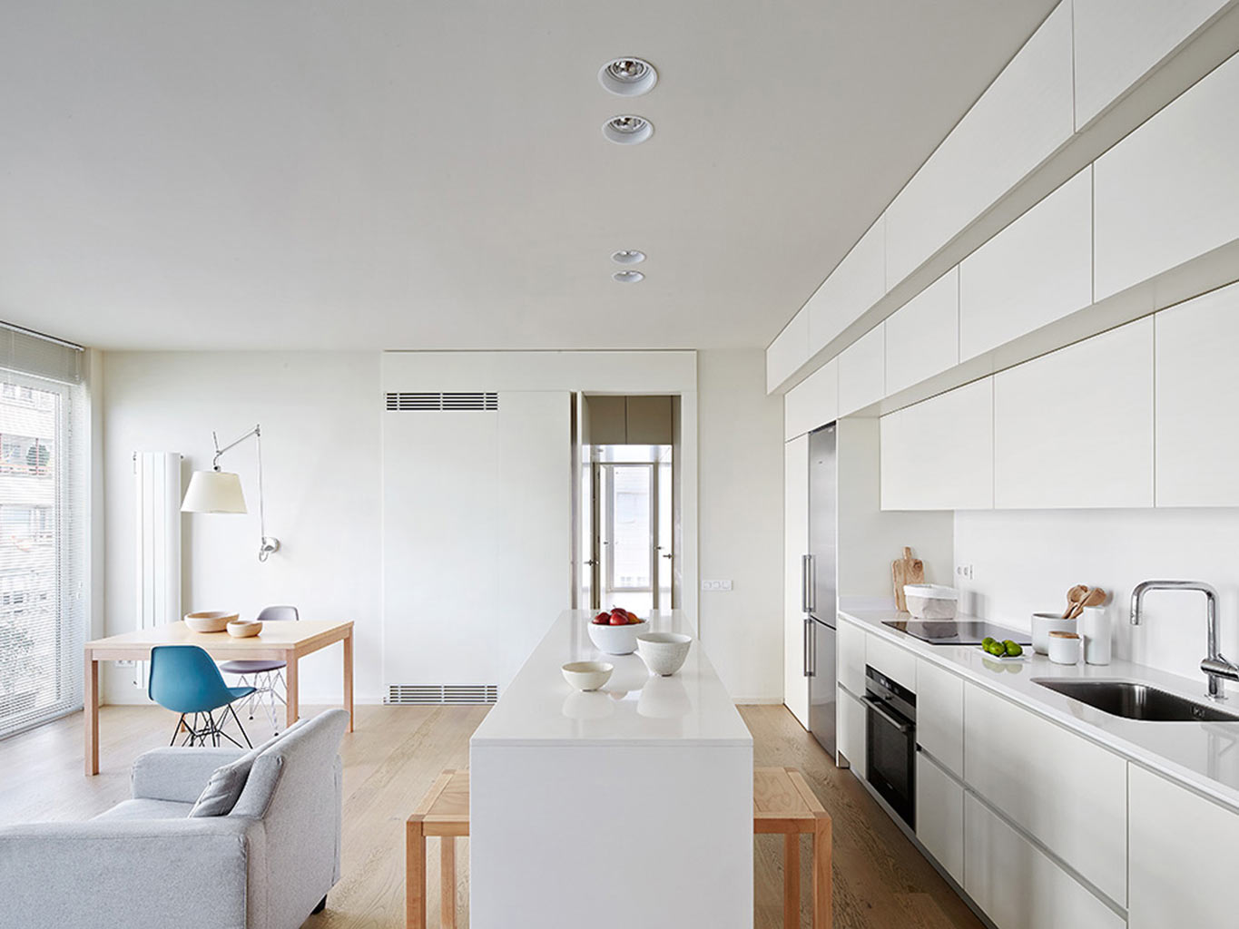 Este apartamento era um antigo escritório em Barcelona, que passou por uma mudança total de uso, após o designer Tomás López Amate, apoiado numa fantástica renovação, o transformar num belo apartamento de família com 100 metros quadrados, brilhante, e com uma circulação fluida.