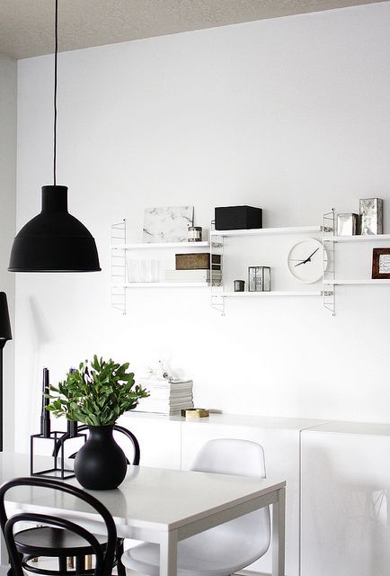 Sou fã incondicional do branco (como provavelmente já terão percebido). Mas nos últimos dias só me aparecem imagens absolutamente inspiradoras de zonas de refeição com candeeiros pretos ou cinzento antracite. E eu gosto muito.Parece-me que talvez seja o ar industrial que me atrai, não sei... mas uma coisa é certa: esta combinação de candeeiros pretos com cadeiras Eames coloridas funciona na perfeição!