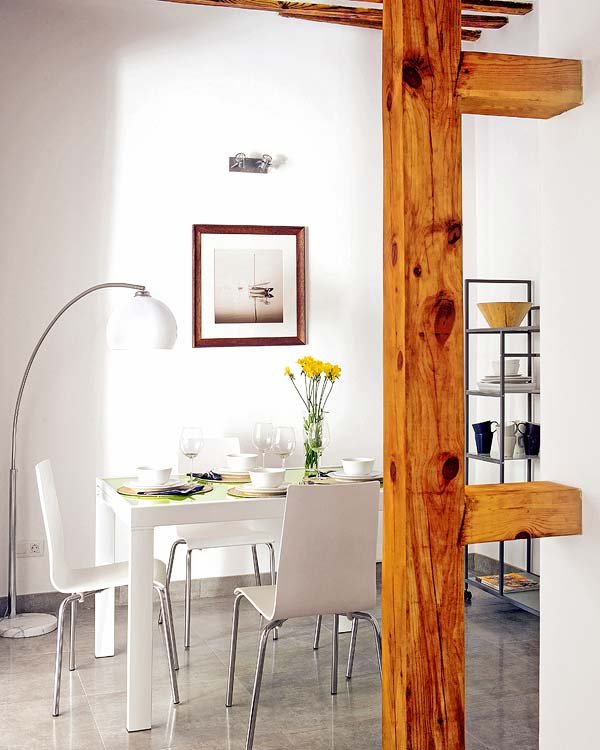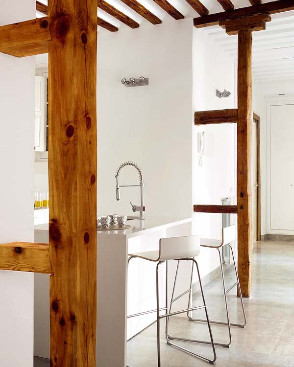 As vigas e pilares de madeira descoberto durante a reforma dão a este apartamento localizado num edifício de 1934, em Madrid, o charme especial dos edifícios antigos, combinado com a modernidade e espírito jovem de espaços contemporâneos, alcançado por este projeto de Christopher Leniart e Miguel Colomo do gabinete de arquitetos Workplace Solutions.