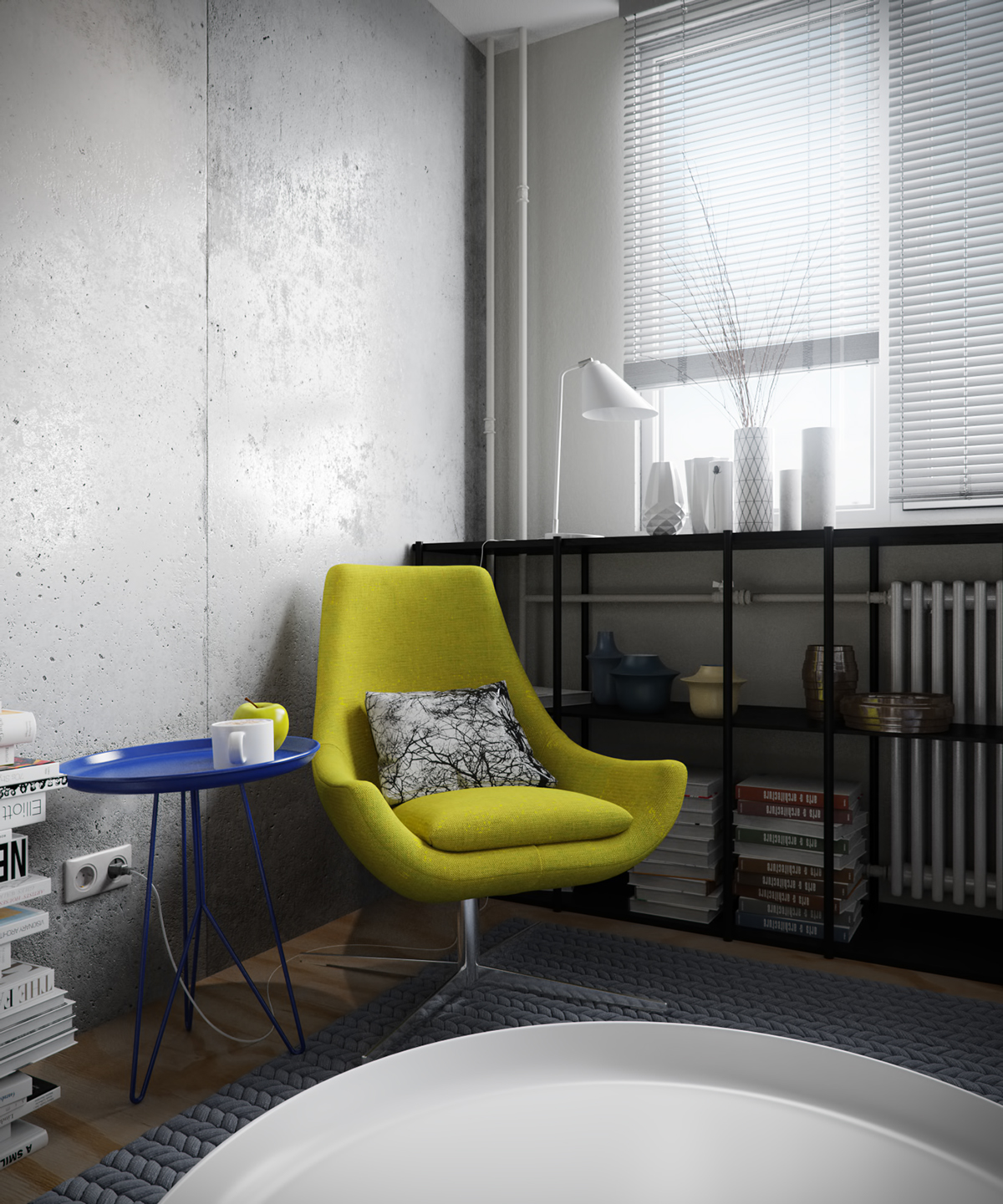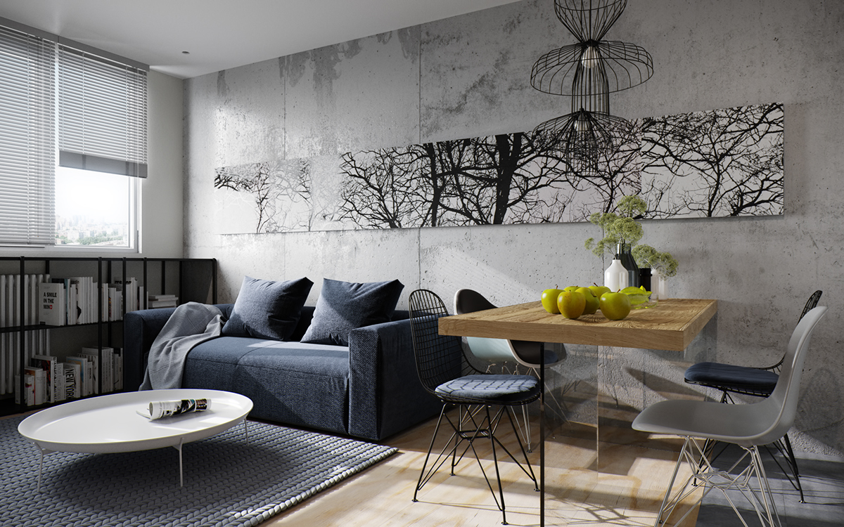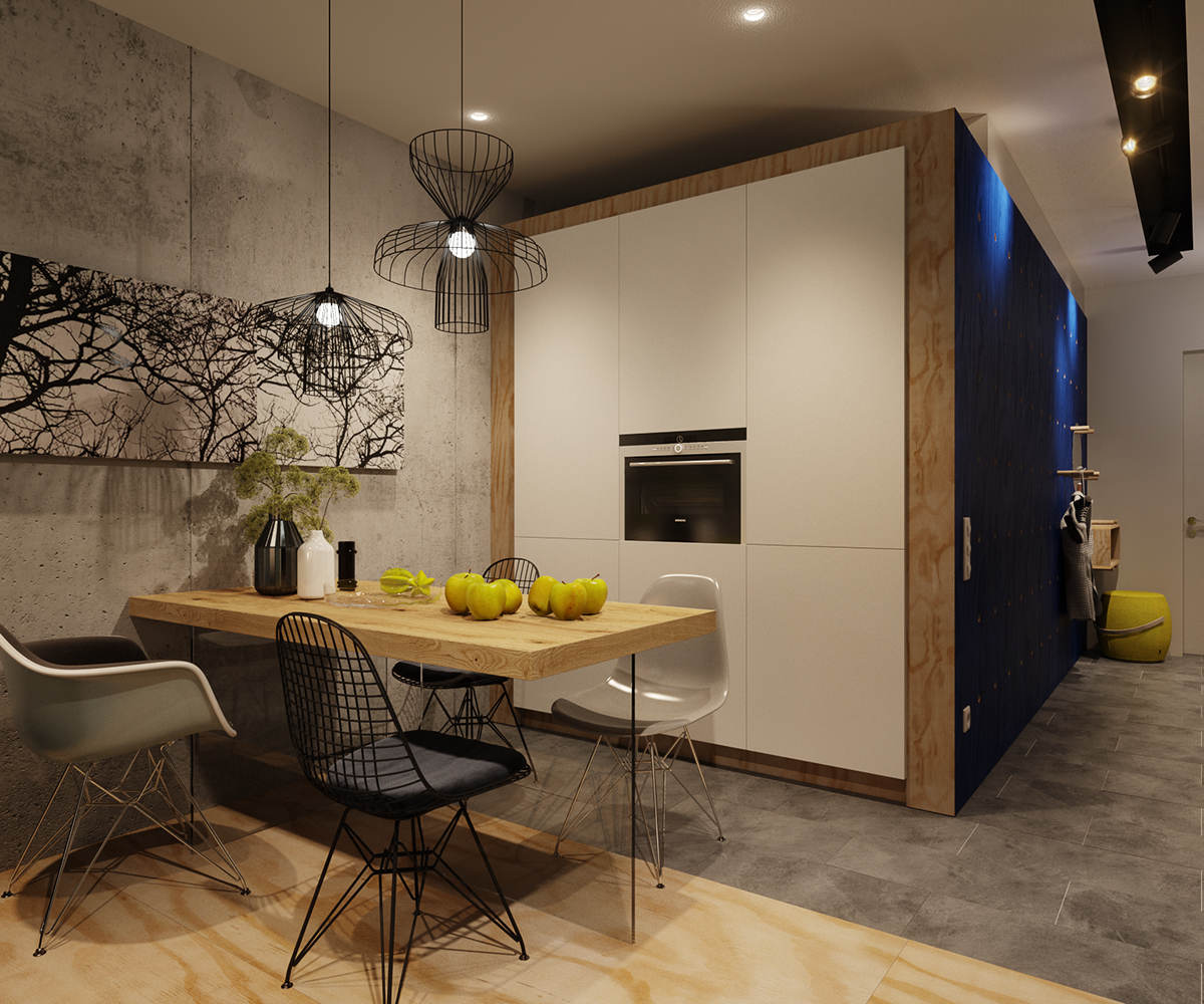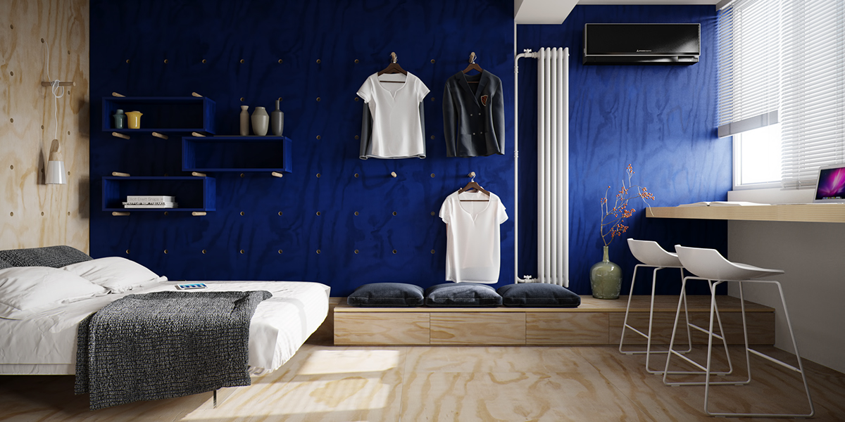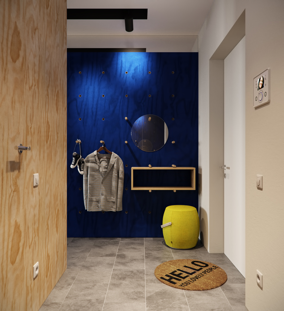 Perfeitamente adaptado para uma vida a dois, ele alterna cimento, madeira prensada, cores naturais e azul profundo num equilíbrio perfeito.