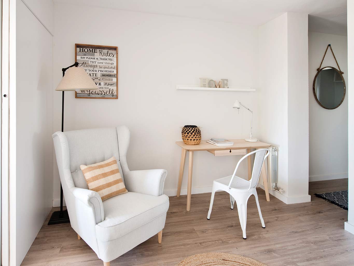Este apartamento de 60m² e terraço de 20e metros quadrados localizado em Barcelona, junto ao Arco do Triunfo, tem uma vista incrível sobre a cidade. Precisava de uma renovação completa que foi assegurada pela designer de interiores Dara Díaz de Nice Home Barcelona, que tinha de cumprir um orçamento limitado. Ao estilo nórdico simples foi escolhida a suavidade, que é perfeita para este espaço, agora brilhante e acolhedor.