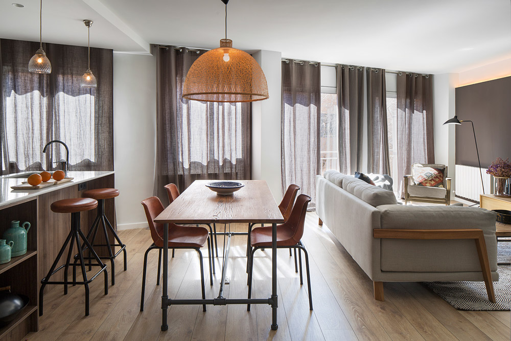 Foi o estúdio de arquitetura de interiores Meritxell Ribé liderado por Meritxell Ribé e Josep Puigdomènech, que dirigiu a decoração deste apartamento de cores sóbrias, localizado na Catalunha. Respeitando tanto a vontade dos seus proprietários e o espírito original do edifício, o estúdio foi capaz de tirar o máximo partido deste projeto, e faz deste um espaço acolhedor e hospitaleiro, étnico. colorido e elegante.