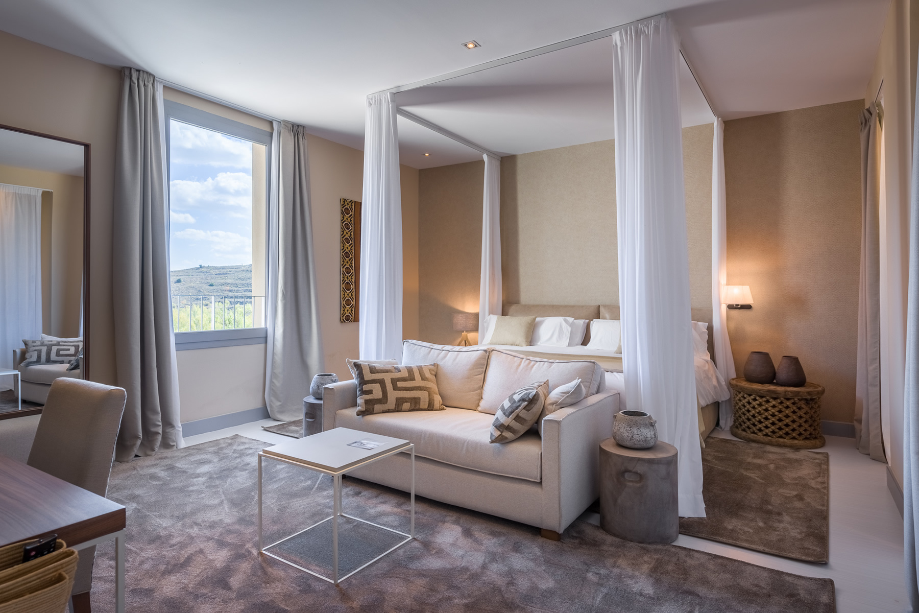 Este é o Hotel BalneariodeSegura, localizado na região de Saragoça, em Espanha cercado por montanhas selvagens. A decoração foi inspirada na África contemporânea e tradicional.
